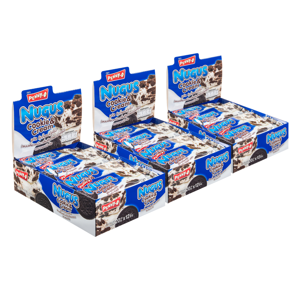 เพนนีโอ นูกัส ขนมเคี้ยวหนึบ รสคุกกี้แอนด์ครีม 20 กรัม แพ็ก 12 ชิ้น x 3