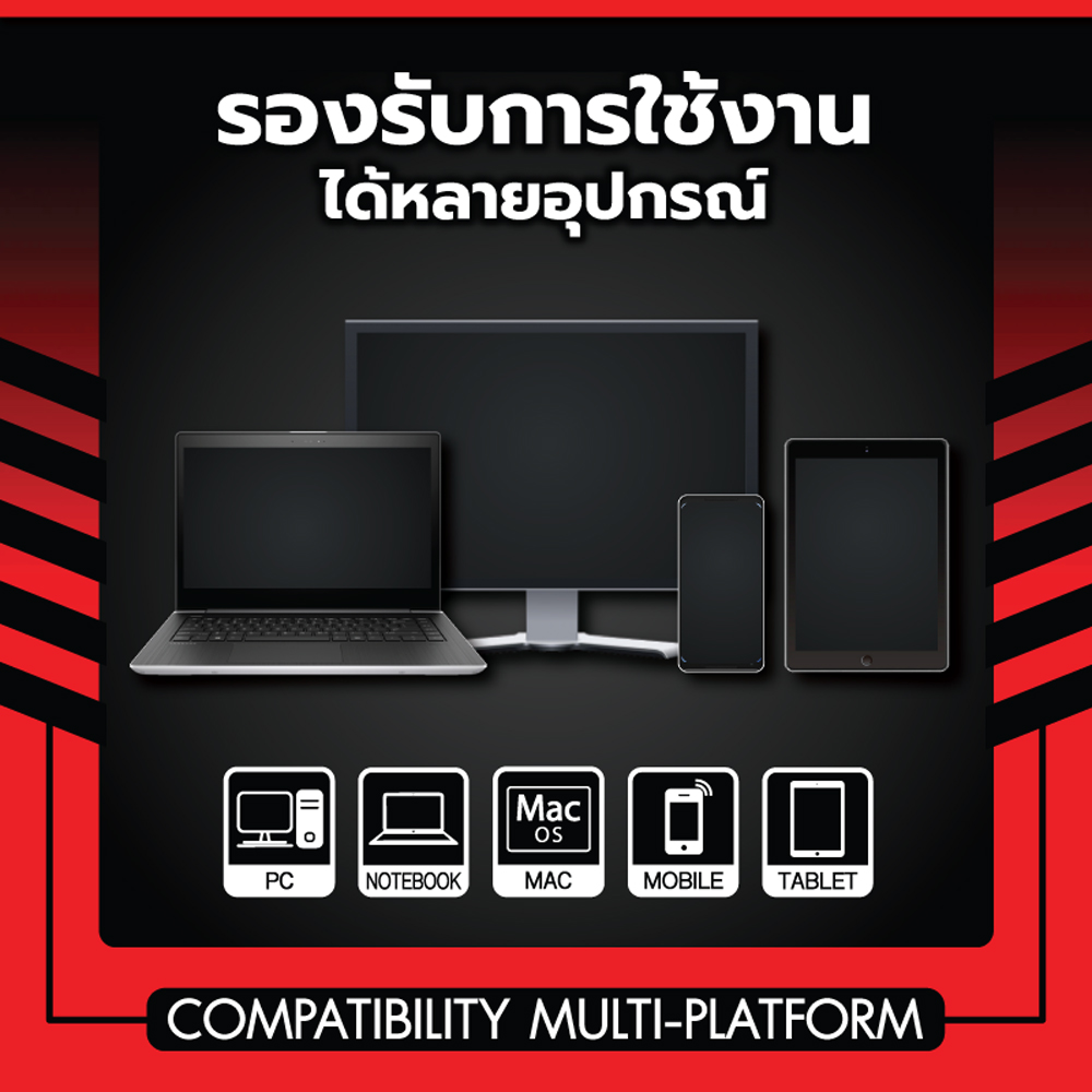 เชื่อมต่อได้อย่างง่ายดายหลากหลายทุกแพลตฟอร์ม รองรับการใช้งานทุกอุปกรณ์ไม่ว่าจะเป็น Computer PC , Notebook , MObile , Tablet