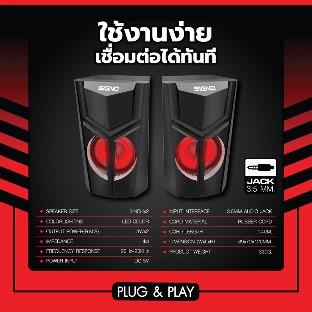 SP-614 SAGGIO มาพร้อมการเชื่อมต่อผ่านช่อง Audio Jack 3.5mm ที่ช่วยให้รับสัญญาณได้ง่ายและเสถียรมากขึ้น ทำให้คุณได้รับเสียงที่มีคุณภาพดียิ่งขึ้น