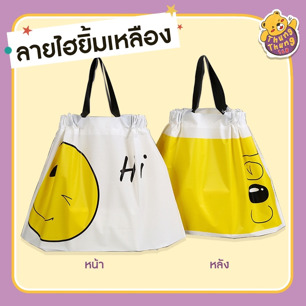 Matapat ถุงแฟชั่นมีเชือกรูด ขยายข้าง (Hi ยิ้มเหลือง,25x35 CM.) ถุงการ์ตูนลายน่ารักๆ ถุงของขวัญลายการ์ตูน ถุงพลาสติกพิมพ์ลาย ถุงหูรูด ถุงหิ้วแฟชั่น (50ใบ)