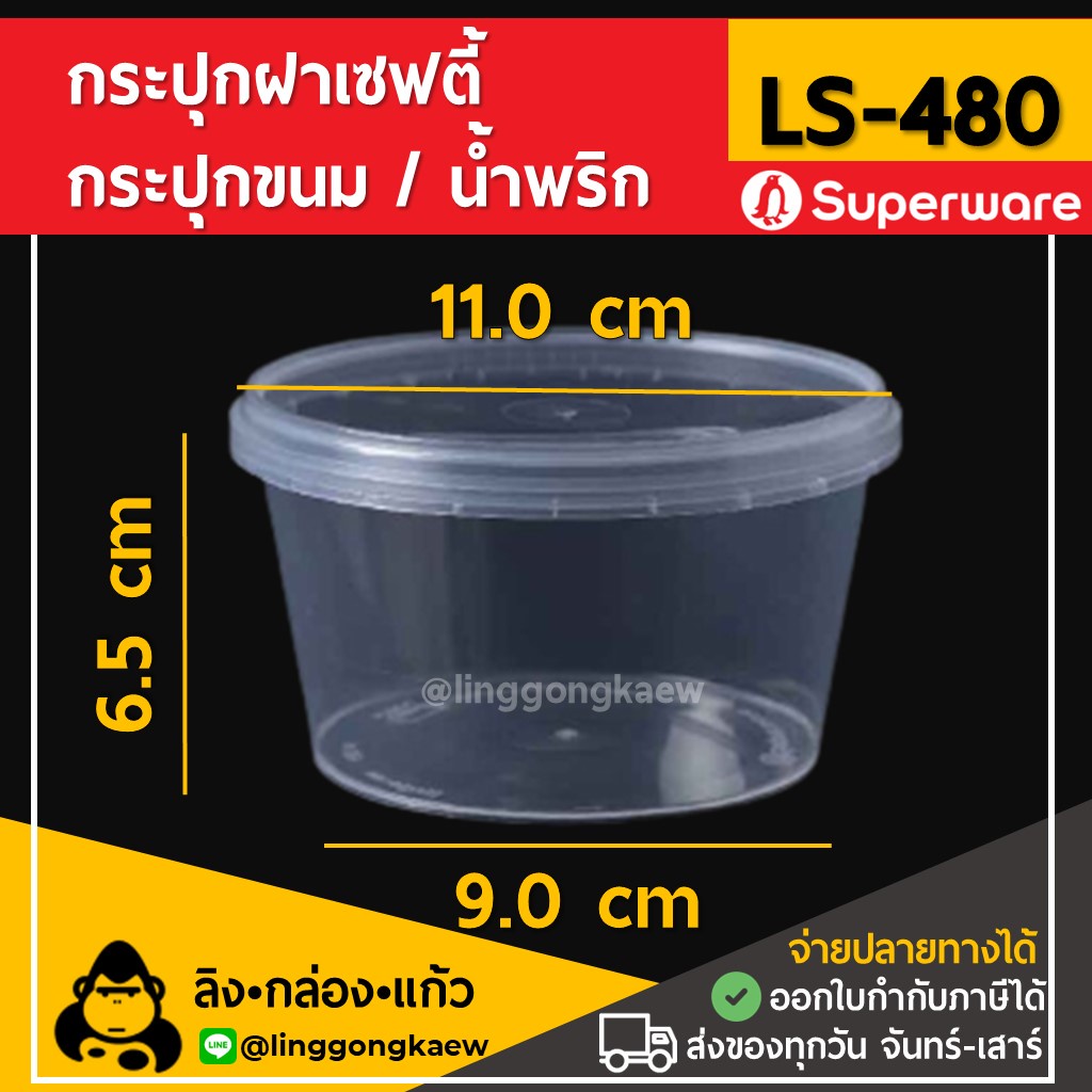 ลิงกล่องแก้ว กระปุกฝาล็อค ฝาเซฟตี้ ถ้วยฝาล็อค กระปุกพลาสติก PP กระปุกคุกกี้ กล่องใส่อาหาร กล่องขนม Superware LS480 [50 ใบ]