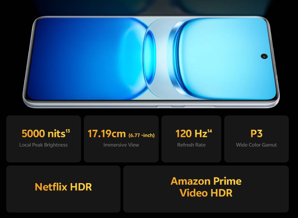 จอภาพสว่างพิเศษ 5,000 nits ให้สีสันสดใสและรายละเอียดคมชัด ขณะที่อัตราการรีเฟรช 120Hz ช่วยให้มั่นใจได้ว่าจะได้ภาพที่ราบรื่น