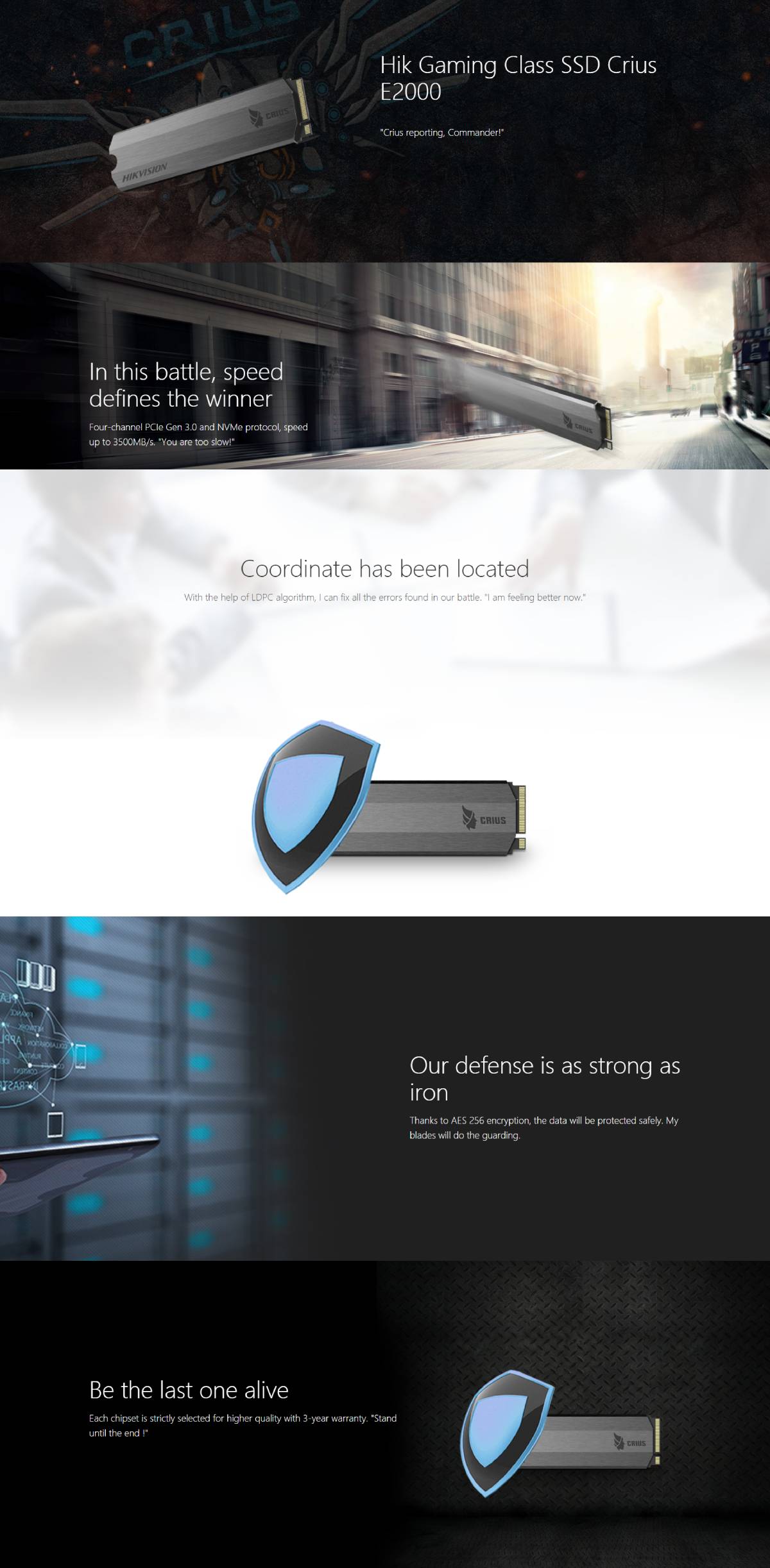 Hikvision E2000 ใช้อินเทอร์เฟซ M.2 การควบคุม SSD ขั้นสูง ชิปประมวลผลและแฟลช 3D NAND เพื่อปรับปรุงความเร็ว Read / Write ได้อย่างมีประสิทธิภาพและมั่นใจในความปลอดภัยของข้อมูลใช้กับคอมพิวเตอร์ส่วนบุคคลและพร็อกซีเซิร์ฟเวอร์ขนาดเล็กในการจัดหา บริการที่เสถียรและความเร็วสูง นอกจากนี้ยังสามารถปรับปรุงการเล่นเกมระดับไฮเอนด์ประสบการณ์และประสิทธิภาพการแก้ไขกราฟิก 3D ทั้งยังมีค่า TBW 3,000 (Terrabyte Wirtten)
