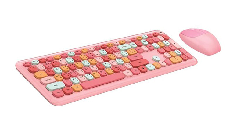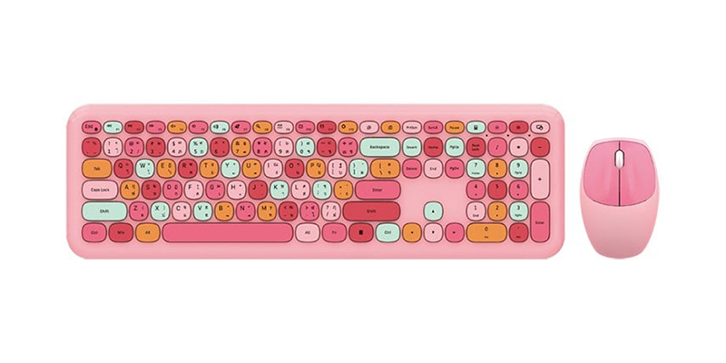 Mouse และ Keyboad combo set แบบไร้สาย และ ไร้เสียง Keyboard ขนาด Fullsize ที่มาพร้อมกับปุ่มตัวเลข ปุ่มจะเป็นปุ่มกลม