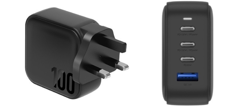 ► ENERGEA TRAVELITE GaN100 เป็น Adapter ที่ใช้เทคโนโลยีของ GaN เพิ่มประสิทธิภาพในการทำงานและระบบคูลเลอร์ระบายความร้อน รองรับการชาร์จเร็ว 100W เหมาะใช้งานกับ M1 MacBook Pro และ iPhone 8 ขึ้นไป รองรับการชาร์จแบบ PPS44W ที่ทำให้สามารถชาร์จกับอุปกรณ์ Andriod ต่างๆได้อีกด้วย มี USB PORT USB-C ให้ถึง 3 พอร์ตบน และ USB-A 1 พอร์ตล่าง ที่สามารถให้พลังงาน 100W, 30W, 20W และ 18W ตามลำดับ ถ้าใช้งานทั้ง 4 พอร์ตพร้อมกันจะให้พลังงานอยู่ที่ 45W, 30W, 7.5W และ 7.5W ตามลำดับ