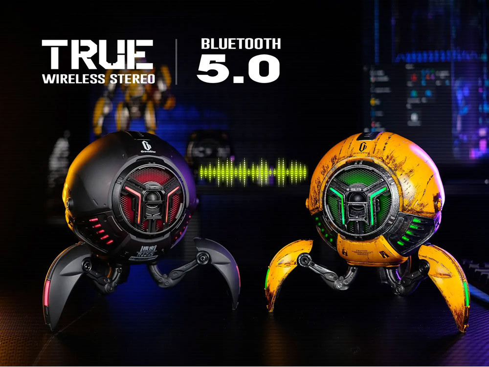 ลําโพงไร้สายสร้างขึ้นจากทรงกลมโลหะผสมสังกะสี การออกแบบสามเหลี่ยมที่มั่นคงแข็งแรงและสามารถรับมือกับแรงกระแทกเล็กน้อยได้อย่างมีประสิทธิภาพ