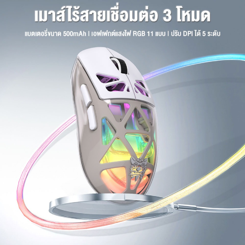 เอฟเฟกต์แสง RGB ที่สามารถปรับได้ถึง 11 แบบ สร้างบรรยากาศเกมมิ่งสุดล้ำ พร้อมการออกแบบสไตล์เทคโนโลยีแห่งอนาคต เอฟเฟกต์แสงที่มีมิติคล้ายการไหลของน้ำ เพิ่มความโดดเด่นให้กับโต๊ะของคุณ