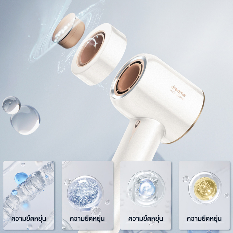 หัวเป่าเอสเซนส์ดูแลเส้นผมความเข้มข้นของไอออนลบมากกว่า5เท่า ช่วยให้ผมเรียบลื่น และกักเก็บความชุ่มชื้นได้ดีขึ้น ทำให้ผมนุ่มสลวยสวยงาม