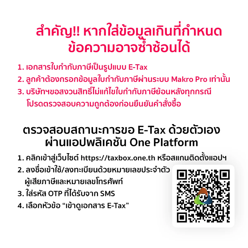 หมายเหตุ: หากท่านมีข้อสงสัยเพิ่มเติมสามารถติดต่อที่แผนลูกค้าสัมพันธ์ได้ที่ โทร 1432 ต่อ 2 หรือ LineOA: @makropro