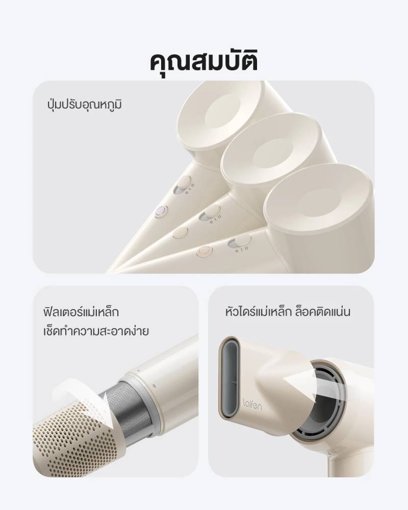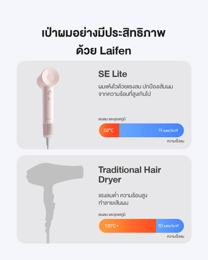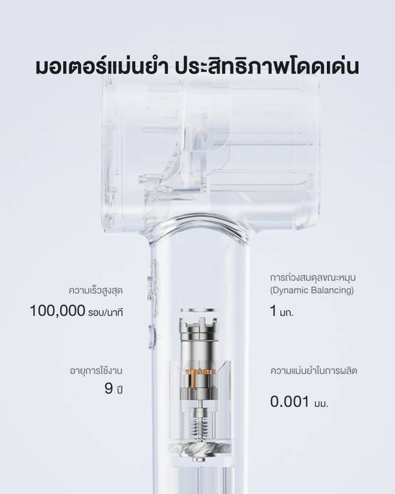 High Speed Motor & Air Volume เป่าผมแห้งได้อย่างรวดเร็วและใช้งานได้จริงมากขึ้นด้วยขนาดเเละน้ำหนักที่เหมาะสำหรับการพกพา