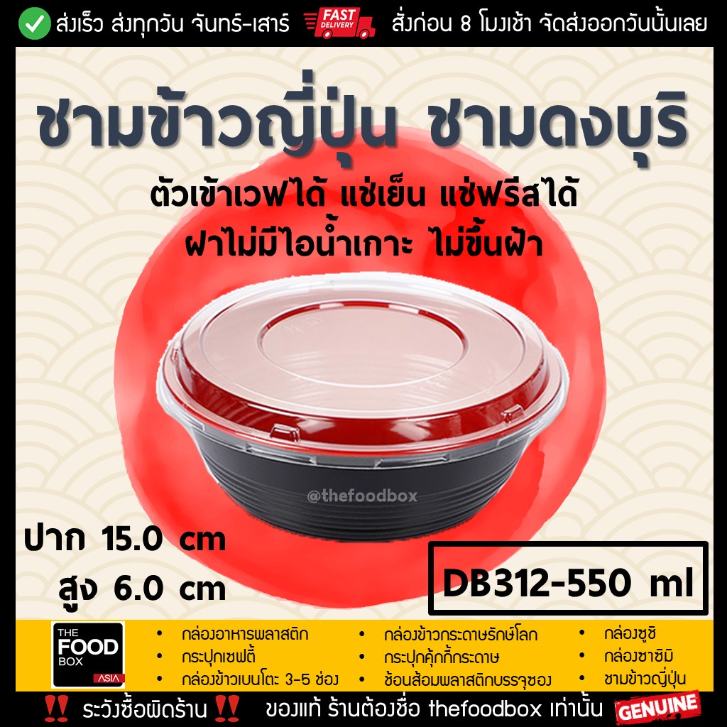 [พร้อมฝา50ใบ] ชามข้าวญี่ปุ่น ชามดงบุริ ถ้วยด้ง ชามพลาสติก ถ้วยพลาสติก พลาสติกใส ถ้วย ใส่อาหาร ถ้วย ไมโครเวฟ ชนิดพลาสติก : ตัว PP + ฝา OPS [ใส่ร้อนไม่ขึ้นไอน้ำ ใส่เย็นไม่ขึ้นฝ้า] ขนาด : 🍜DB312-550ml : Ø15.0x6.0 cm. 🍜DB313-700ml : Ø16.5x6.2 cm. 🍜DB314-1000ml : Ø18.5x6.5 cm. สี : ดำ-แดง**นอกดำ-ในแดง** : ดำล้วน #ชามข้าวญี่ปุ่น #ชามดงบุริ #ถ้วยด้ง #ชามแดง #ถ้วยข้าวญี่ปุ่น #ถ้วยดำแดง #ชามดำแดง #DB312 #DB313 #DB314 #กล่องอาหารญี่ปุ่น #donburi #ถาดอาหารญี่ปุ่น #ฝาOPS #ถูก #thefoodbox #ชามข้าว #ถ้วยข้าว #ชามญี่ปุ่น
