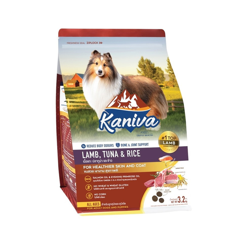 อาหารสุนัขพรีเมียมที่อุดมไปด้วยคุณค่าสารอาหารตามมาตรฐานของกองควบคุมอาหารสัตว์เลี้ยงแห่งสหรัฐอเมริกา (AAFCO) ทางเราคัดสรรวัตถุดิบคุณภาพสูงเพื่อสุนัข ""ขนสวย เงางาม สุขภาพดี"" ทวีคูณความอร่อยด้วยเนื้อแกะที่เป็นส่วนผสมหลัก มีโปรตีนสูงช่วยเสริมสร้างกล้ามเนื้อ แคลเซียมแลฟอสฟอรัสเพื่อกระดูก และฟันที่แข็งแรง ไลซีนช่วยเสริมสร้างภูมิต้านทาน MOS พรีไบโอติกจากธรรมชาติ เสริมสร้างภูมิต้านทาน สร้างสมดุลในระบบทางเดินอาหาร ทั้งยังมีใยอาหารสูง ช่วยในเรื่องระบบขับถ่าย สารสกัดจากยัคคา ควิลราจา ซาโปนาเรีย และเอนไซม์เพิ่มประสิทธิภาพการย่อย ลดกลิ่นฉุนในปัสสาวะ และกลิ่นมูล ปราศจากส่วนผสมของข้าวสาลีและข้าวโพด อุดมไปด้วยคุณค่าสารอาหารที่เหมาะสมสำหรับสุนัขทุกช่วงวัย (ไม่มีส่วนผสมของเนื้อไก่ สุนัขที่แพ้ไก่สามารถกินได้)