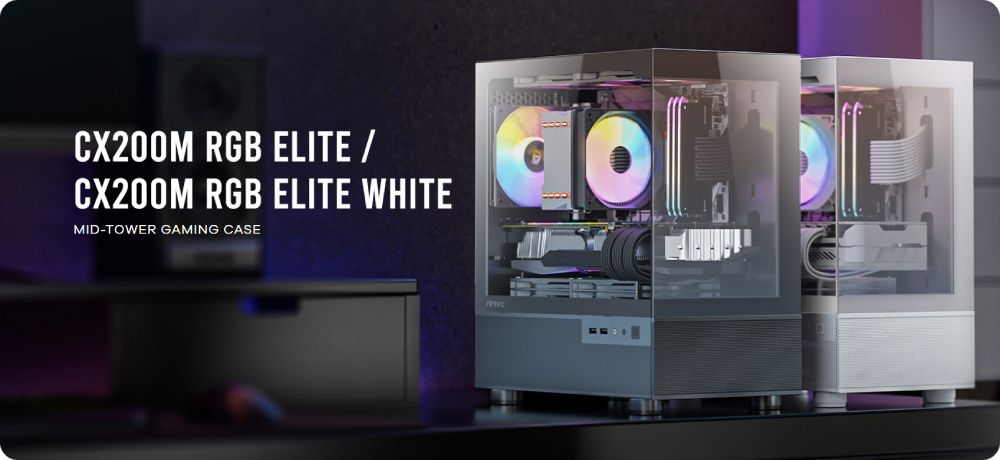 เคสคอมพิวเตอร์ Antec CX200M RGB ELITE โดดเด่นด้วยดีไซน์แบบมุมมองเต็มจอที่แผงด้านซ้ายและด้านหน้าแบบไร้รอยต่อ จึงเป็นตู้เคสที่เหมาะสำหรับการติดตั้ง Micro-ATX ของคุณ กระจกนิรภัยแบบไม่มีรูเจาะช่วยให้มองเห็นฮาร์ดแวร์ของคุณได้อย่างไม่มีสิ่งกีดขวาง สร้างรูปลักษณ์ที่สวยงามให้กับส่วนประกอบต่างๆ ของคุณ