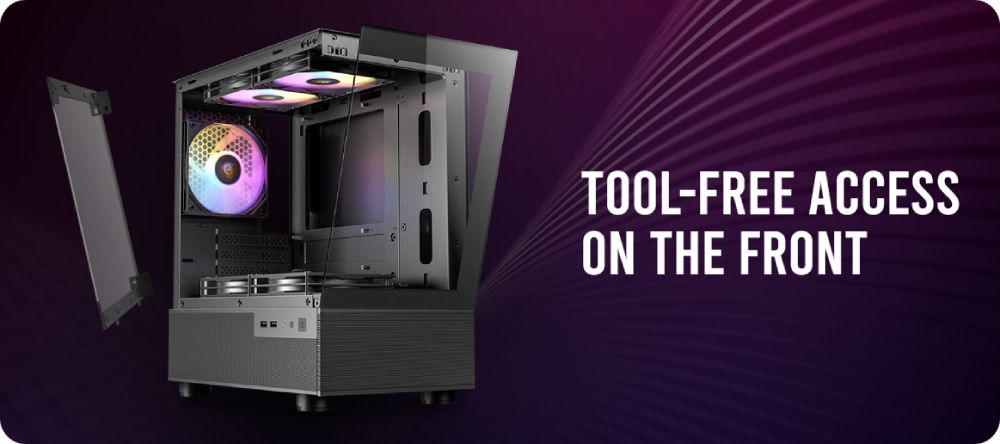 แผงด้านหน้าสามารถถอดออกได้อย่างง่ายดายหลังจากถอดแผงด้านข้างออก ทำให้การประกอบและการบำรุงรักษาง่ายที่สุดเท่าที่คุณจะจินตนาการได้