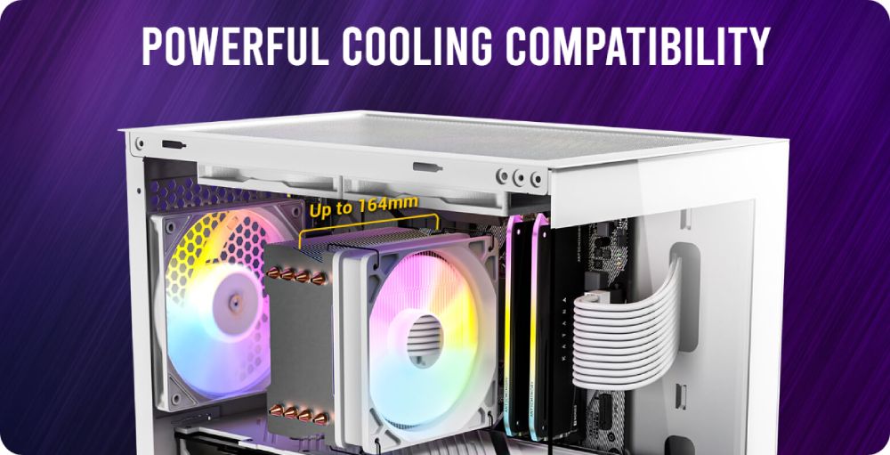 รองรับความสูงของพัดลมระบายความร้อนซีพียูสูงสุด: 164 มม. และรองรับพัดลมระบายความร้อนแบบ High-End Air Cooler