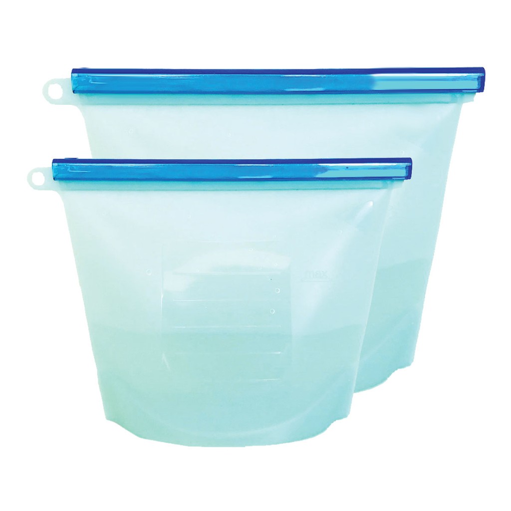 RePlanetMe ถุงซิปล็อคซิลิโคนใส่อาหารผลไม้ซุปแกง Reusable Silicone Zip-Lock Food Bag ฟ้า (Blue) 1,000 มล.