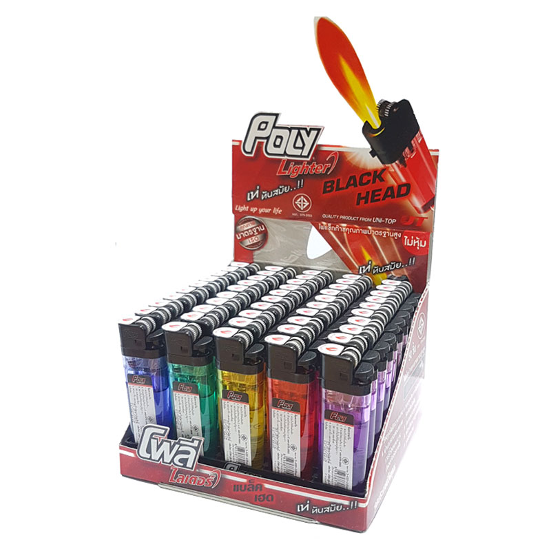 โพลี ไลเตอร์ ไฟแช็คก๊าซ แบล็คเฮดไม่หุ้มพลาสติก x 50