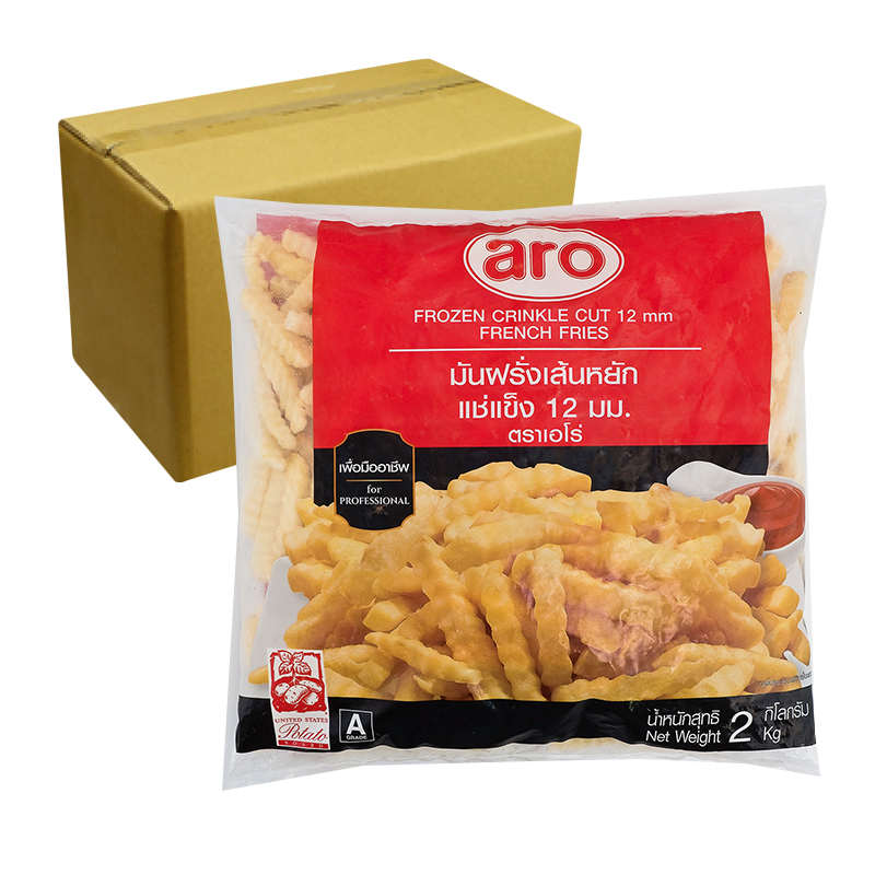 เอโร่ บิ๊กแพ็ค เฟรนช์ฟรายส์แช่แข็ง เส้นหยัก 12 มม. 2 กก. 6 แพ็ค x 5