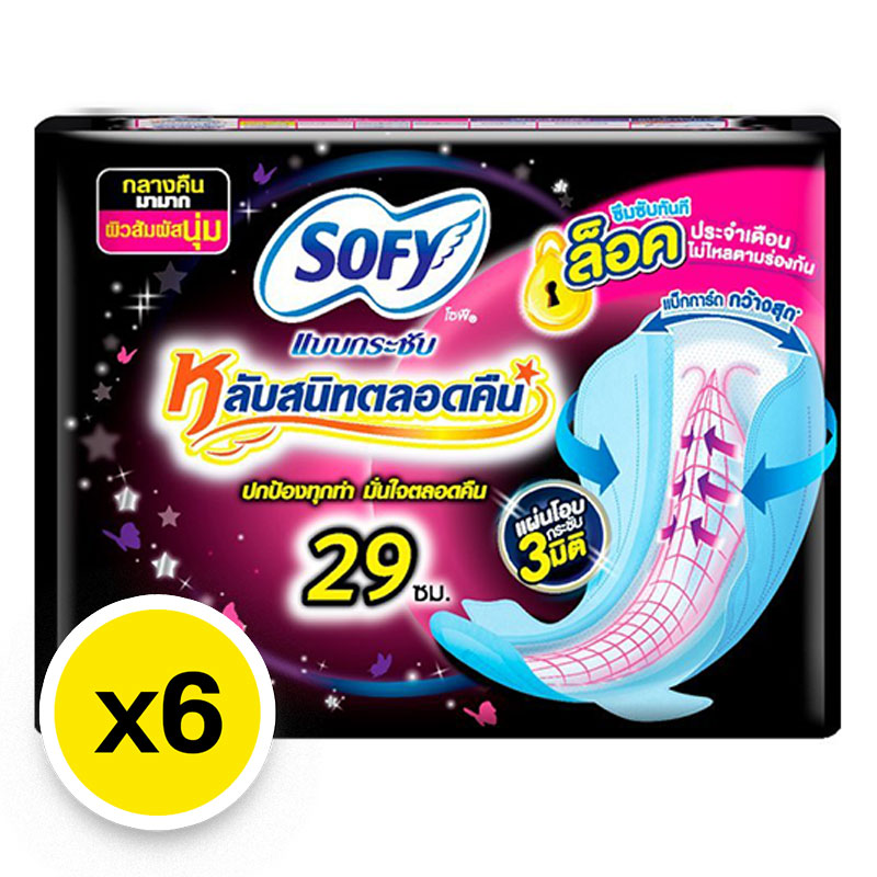 โซฟี ผ้าอนามัยสำหรับกลางคืน แบบกระชับ 29 ซม. 4 ชิ้น x 6
