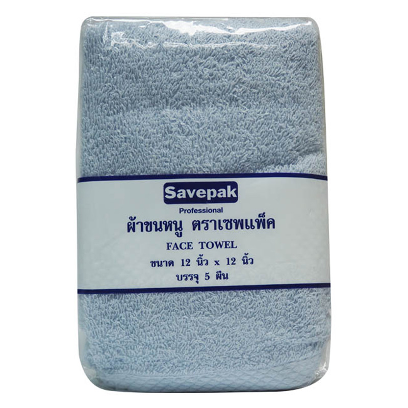 เซพแพ็ค ผ้าเช็ดหน้า สีฟ้า ขนาด 12x12 นิ้ว แพ็ค 5 ผืน