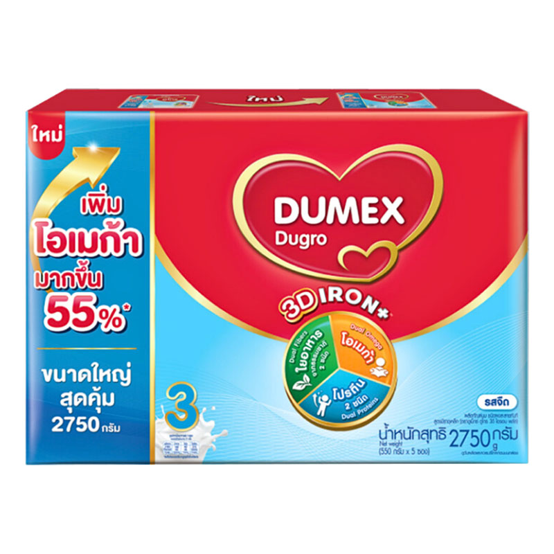 - ชื่อสินค้า: ดูเม็กซ์ ดูโกร ผลิตภัณฑ์นมผง 3 พลัส รสจืด 2.75 กก. - แบรนด์: ดูเม็กซ์ ดูโกร - ปริมาณบรรจุ: 1 หน่วย