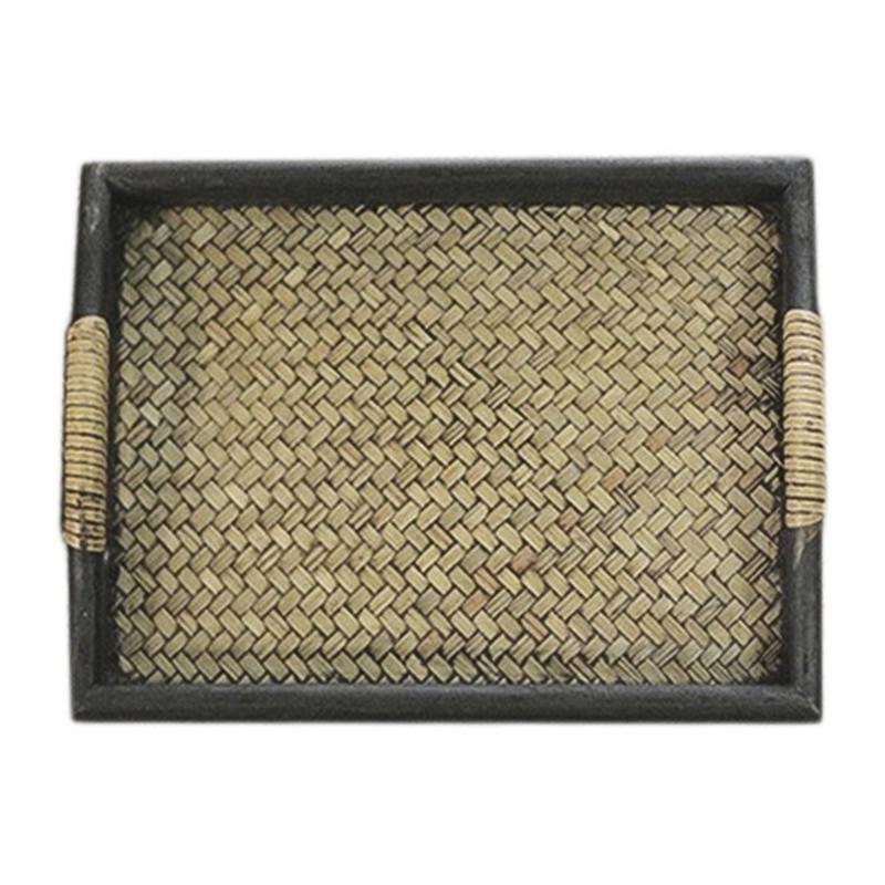 ถาดเสิร์ฟไม้ไผ่สานมีหู ขนาด 14x17 นิ้ว