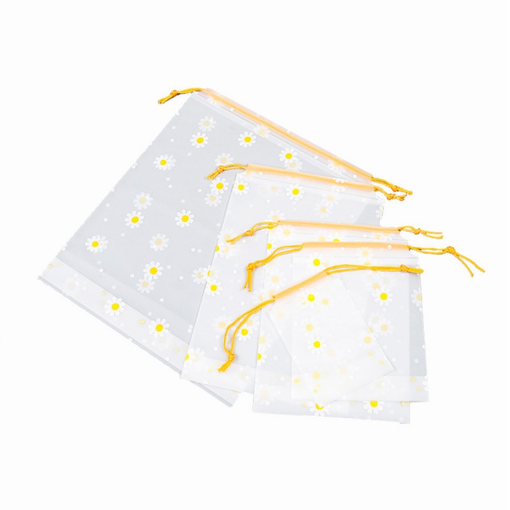 ถุงหูเชือก ถุงเชือกรูดพลาสติกลายดอกเดซี่ ขายในราคา 1 ชิ้น มี 6 size ให้เลือก 10x15 CM. -ใส่เครื่องสำอางค์ เหรียญ ลิปสติก ขนาดเล็ก 16x20 CM. -ไซต์ขนาดถุงเท้า1-2คู่ กางเกงซับใน เสื้อชั้นใน 1 ตัว 18x25 CM. -ขนาดถุงเท้า 3-6 คู่ -กางเกงชั้นใน, ชุดชั้นใน 3 ตัว -เสื้อ 1 ตัว 20x30 CM. -ใส่เสื้อยืดได้ 1-2 ตัว -กางเกงขาสั้น 1 ตัว 30x35 CM. -ใส่รองเท้า 1 คู่ -ใส่เสื้อยืด 3-5 ตัว -กางเกงขายาว 1 ตัว รายละเอียดการจัดส่ง สินค้า --> มีสินค้าพร้อมส่ง จัดส่งรวดเร็ว ทุกวันจันทร์ - เสาร์ --> สินค้าทุกชิ้นผ่านการตรวจสอบคุณภาพแล้ว --> หากพบปัญหา ทางร้านเรามี Admin คอยให้บริการ 07.30น.-17.00น. --> จัดส่งโดย ขนส่ง Best Express / Kerry / J&T --> มีบริการเก็บเงินปลายทาง (COD) ****************************************** *** โปรดอ่านก่อนสั่งซื้อ *** • ทางร้านไม่สามารถแก้ไขข้อมูลชื่อ ที่อยู่ เบอร์โทรคุณลูกค้า หลังได้รับคำสั่งซื้อเข้ามาในระบบ กรุณาตรวจสอบข้อมูลให้ถูกต้องก่อนการกดสั่งซื้อสินค้าทุกครั้ง หากข้อมูลผิด รบกวนทำการยกเลิกออเดอร์แล้วสั่งซื้อเข้ามาใหม่นะคะ • ทางร้านไม่รับเปลี่ยนหรือคืนทุกกรณี ยกเว้นความผิดพลาดอันเนื่องมาจากจัดส่งสินค้าผิด • ทางร้านต้องขออภัยในกรณีสินค้าหมด ขออนุญาตยกเลิกคำสั่งซื้อ หรือคืนเงินส่วนต่างให้กับคุณลูกค้า ******************************************