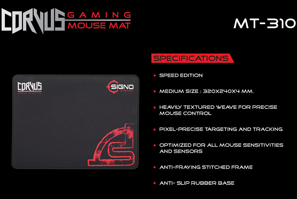 ซื้อ แผ่นรองเมาส์ Signo E-Sport Gaming Mouse Mat CORVUS MT-310 Speed Edition (320 x 240 x 4 mm.) แผ่นรองเมาส์กันน้ำ, แผ่นรองเมาส์ลายสวย, แผ่นรองเมาส์ทนทาน, แผ่นรองเมาส์ตอบสนองเร็ว, แผ่นรองเมาส์ใหม่ล่าสุด, แผ่นรองเมาส์ขายดีที่สุด, แผ่นรองเมาส์คอเกมส์, แผ่นรองเมาส์เกมส์มิ่ง, แผ่นรองเมาส์ยอดนิยม, แผ่นรองเมาส์น้ำหนักเบา, แผ่นรองเมาส์ราคาประหยัด, แผ่นรองเมาส์ราคาสบายกระเป๋า, แผ่นรองเมาส์เกมส์ยี่ห้อไหนดี, แผ่นรองเมาส์เกมส์ราคา, ซื้อแผ่นรองเมาส์, Signo, ซิกโน ราคาพิเศษ พร้อมโปรโมชั่นลดราคา ส่งฟรี ส่งเร็ว ทั่วไทย