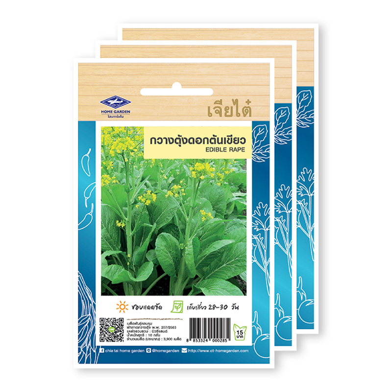 เจียไต๋ เมล็ดพันธุ์กวางตุ้งดอก ต้นเขียว แพ็ค 3 ซอง