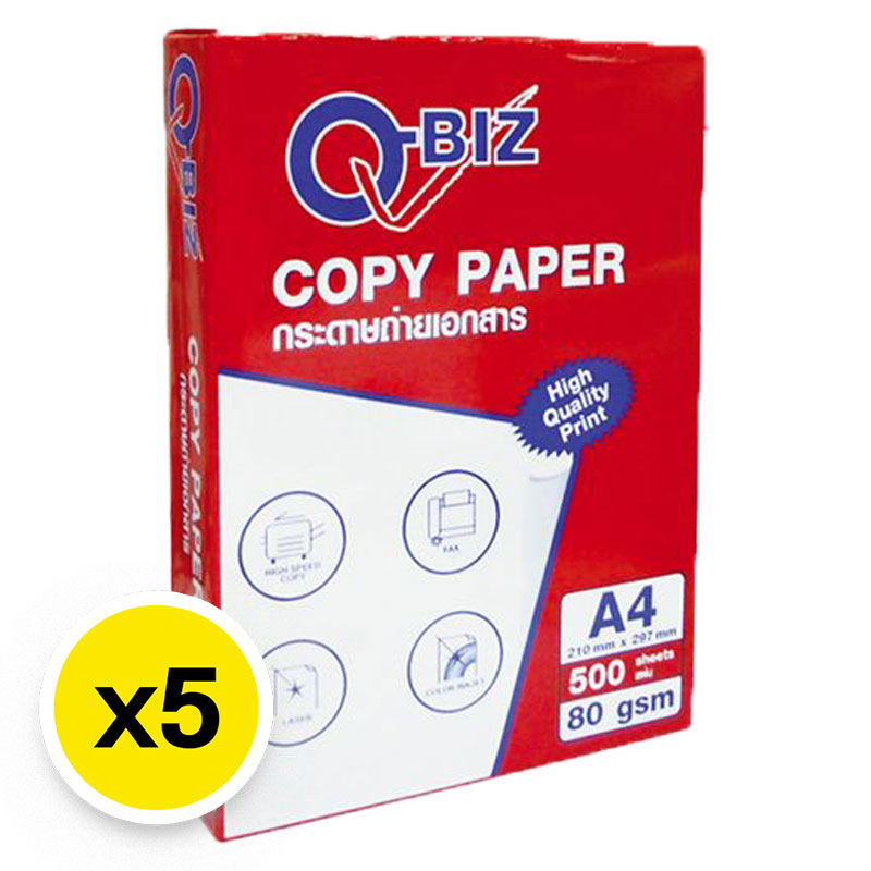 - ชื่อสินค้า: คิวบิซ กระดาษถ่ายเอกสาร A4 80 แกรม 500 แผ่น x 5 - แบรนด์: คิวบิซ - ปริมาณบรรจุ: 5 หน่วย