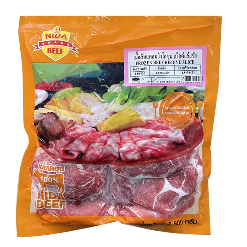 นิดาบีฟ เนื้อสันแหลมวัวโคขุนสไลซ์แช่แข็ง 100 ก. x 5 แพ็ค