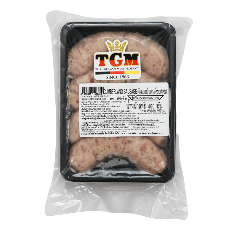 | ชื่อสินค้า | ทีจีเอ็ม ไส้กรอกคัมเบอร์แลนด์ แช่แข็ง 400 ก. |