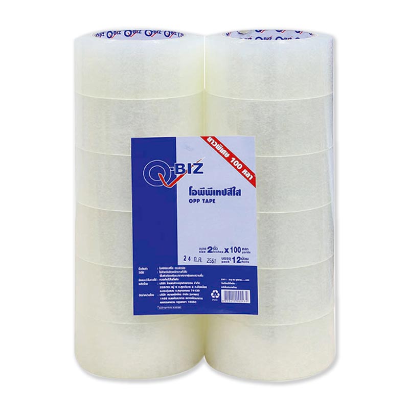 - ชื่อสินค้า: คิวบิซ โอพีพีเทป สีใส 2 นิ้ว 100 หลา แพ็ค 12 ม้วน - แบรนด์: คิวบิซ - ปริมาณบรรจุ: 12 ม้วน