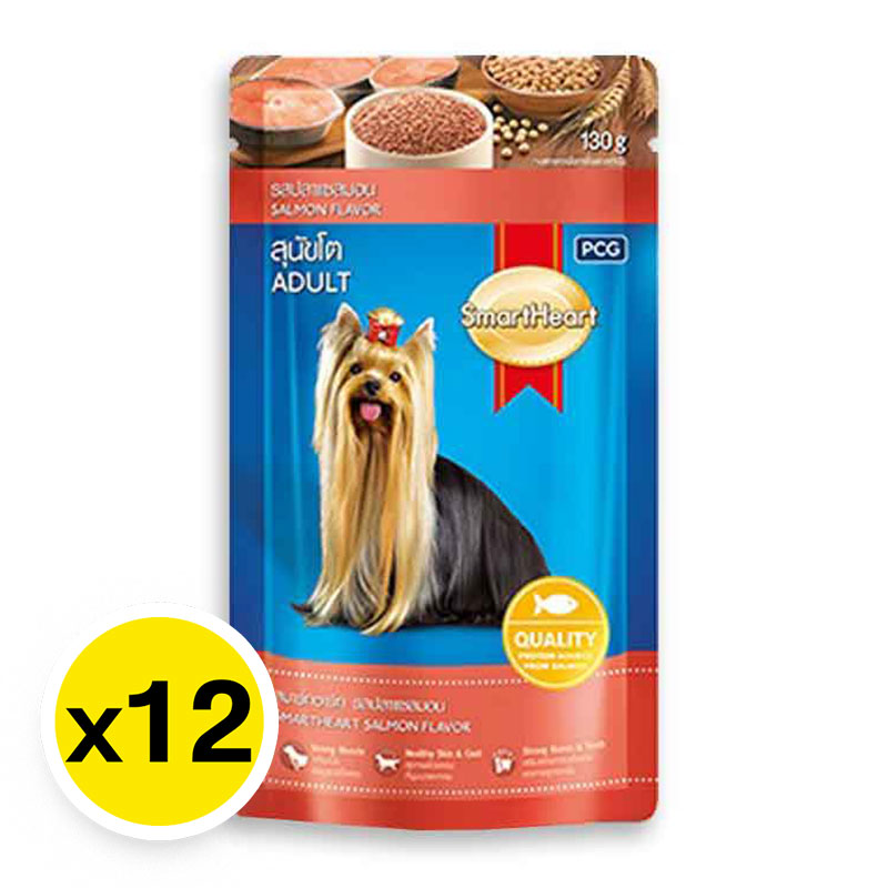 สมาร์ทฮาร์ท อาหารสุนัขแบบซอง รสปลาแซลมอน 130 ก. x 12