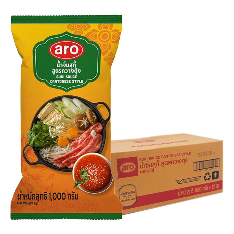 - ชื่อสินค้า: เอโร่ น้ำจิ้มสุกี้สูตรกวางตุ้ง 1 กิโลกรัม x 12 ถุง - แบรนด์: เอโร่ - ปริมาณบรรจุ: 12 หน่วย ข้อมูลการเก็บรักษา: ควรเก็บในที่แห้งและเย็น ใส่ในภาชนะปิดสนิท ถ้าแกะห่อแล้ว