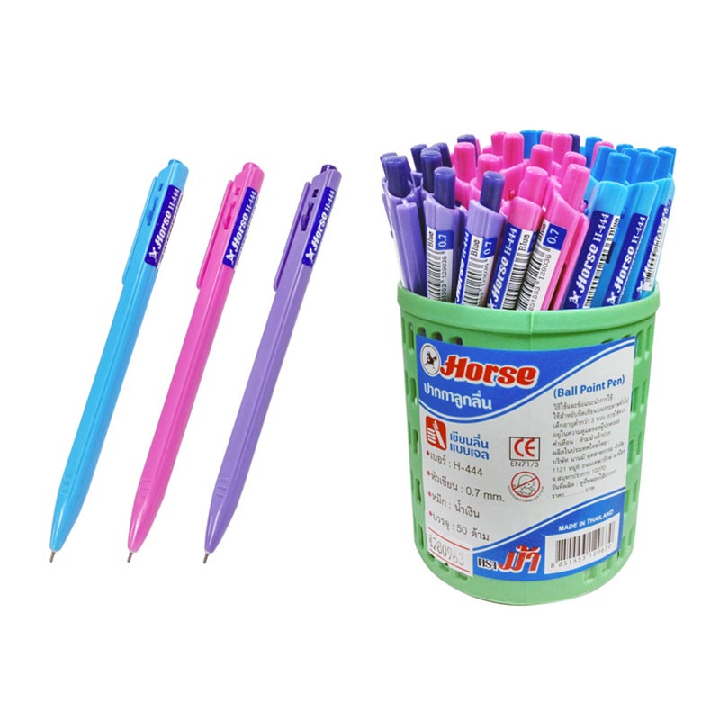 ตราม้า ปากกาลูกลื่นแบบกด 0.7 มม. รุ่น H-402 หมึกสีน้ำเงิน คละแบบ x 50 ด้าม