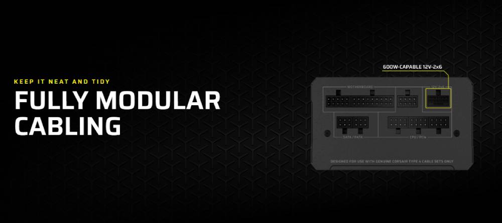 ลดความยุ่งเหยิงของสายเคเบิลโดยการเชื่อมต่อเฉพาะสายเคเบิลที่ระบบของคุณต้องการ ขั้วต่อ GPU 600W 12V-2x6 แบบดั้งเดิมและขั้วต่อ PCIe 8 พินหลายตัวหมายความว่าแหล่งจ่ายไฟ RMe ตอบสนองความต้องการของ GPU และ CPU รุ่นใหม่และรุ่นใหม่ๆ ได้อย่างเหนือชั้น