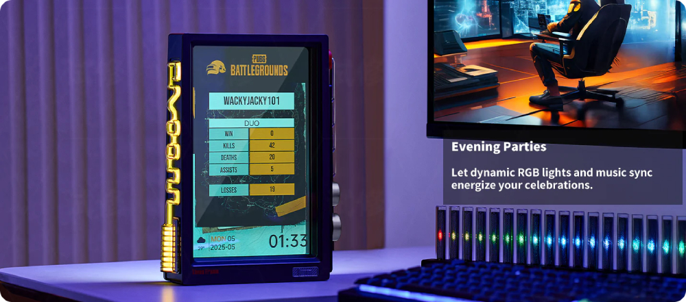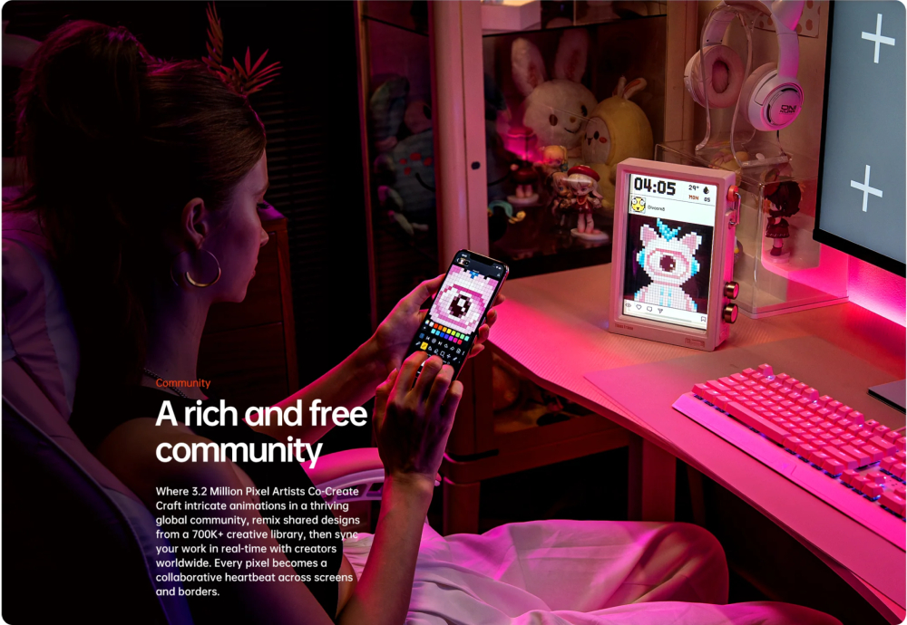 เป็นอุปกรณ์แสดงผลอัจฉริยะที่ผสมผสานระหว่างความเป็นกรอบรูปดิจิทัล หน้าปัดนาฬิกา และงานศิลปะแบบพิกเซลเข้าไว้ด้วยกัน โดดเด่นด้วยดีไซน์ที่ล้ำสมัยและฟังก์ชันที่หลากหลาย เหมาะสำหรับผู้ที่ต้องการตกแต่งโต๊ะทำงานหรือพื้นที่ส่วนตัวให้มีชีวิตชีวาและทันสมัยยิ่งขึ้น