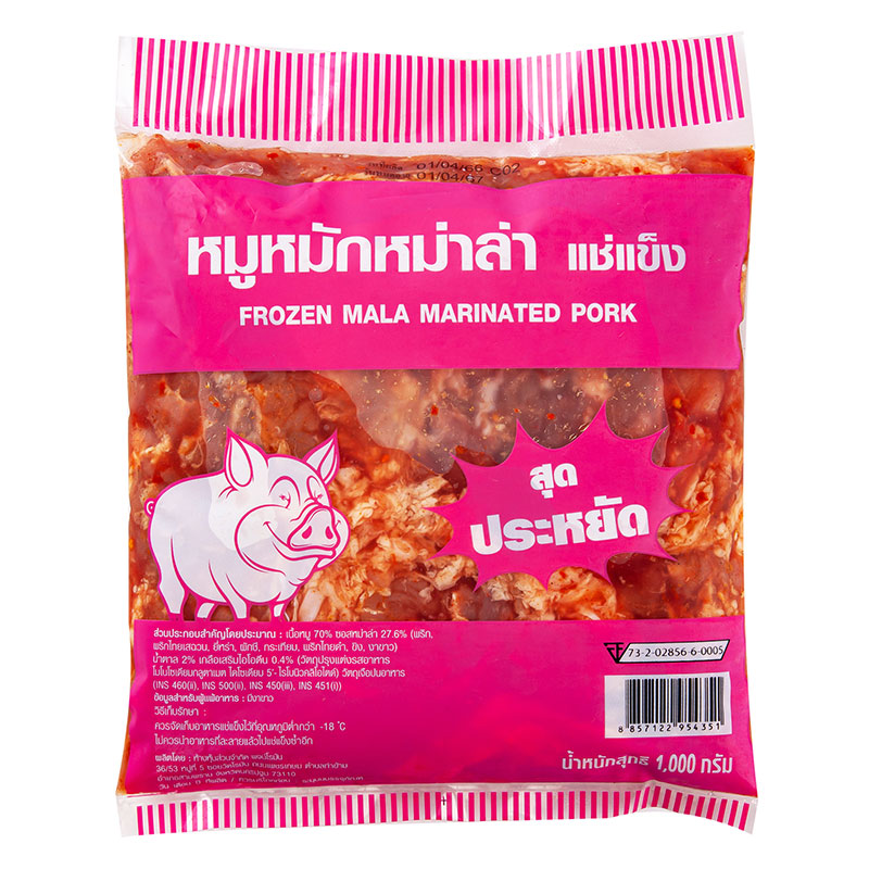 - ชื่อสินค้า: หมูหมักหม่าล่าแช่แข็ง 1 กก. - แบรนด์: แม็คโคร - ปริมาณบรรจุ: 1 หน่วย