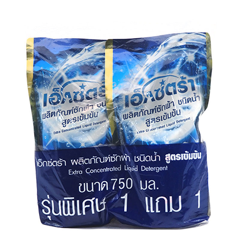 เอ็กซ์ตร้า น้ำยาซักผ้า สูตรเข้มข้น สีน้ำเงิน 750 มล. x 1+1 ถุง