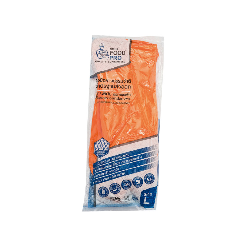 ฟู้ดส์โปร ถุงมือยางสัมผัสอาหารสีส้ม ขนาด 13 นิ้ว ไซส์ L แพ็ค 6 ชิ้น