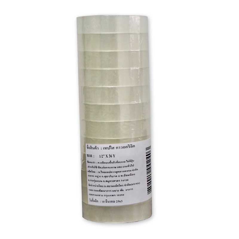 เทปใสแกน 1 นิ้ว ขนาด 1/2นิ้ว x 36 หลา แพ็ค 12 ม้วน