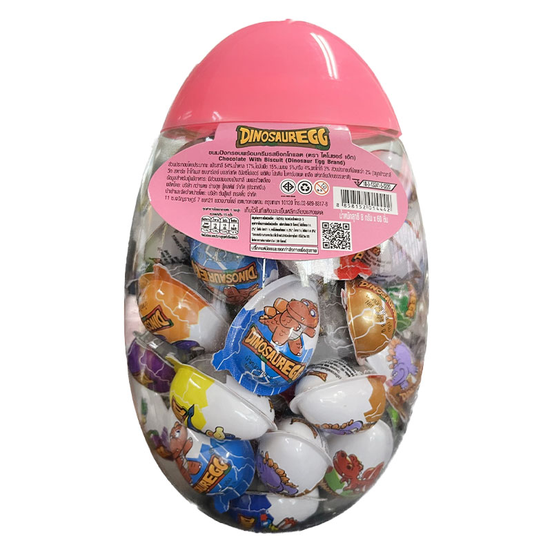 ไดโนซอร์ เอ้ก ขนมปังกรอบครีมช็อกโกแลต รูปไข่ สีชมพู 480 ก.