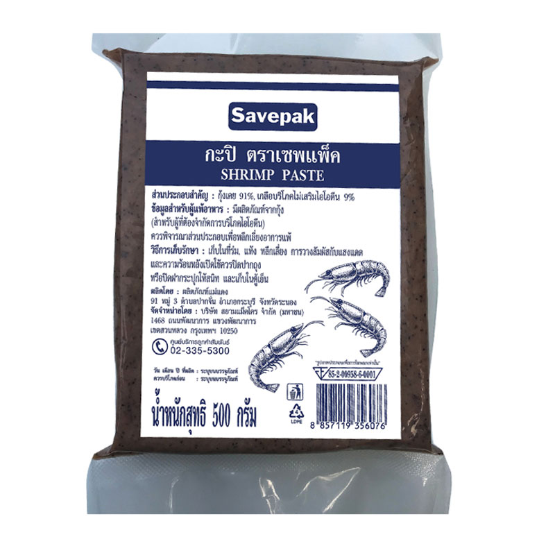 - ชื่อสินค้า: เซพแพ็ค กะปิ 500 ก. - แบรนด์: เซพแพ็ค - ปริมาณบรรจุ: 1 หน่วย