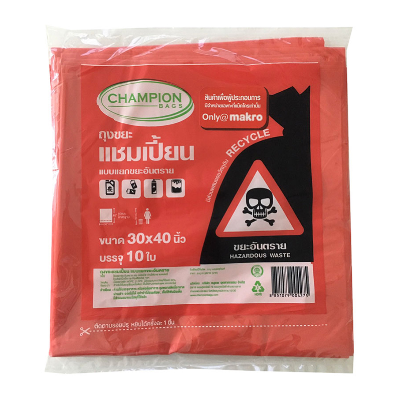 แชมเปี้ยน ถุงขยะสีแดง ใส่ขยะอันตราย ขนาด 30x40 นิ้ว แพ็ค 10 ใบ