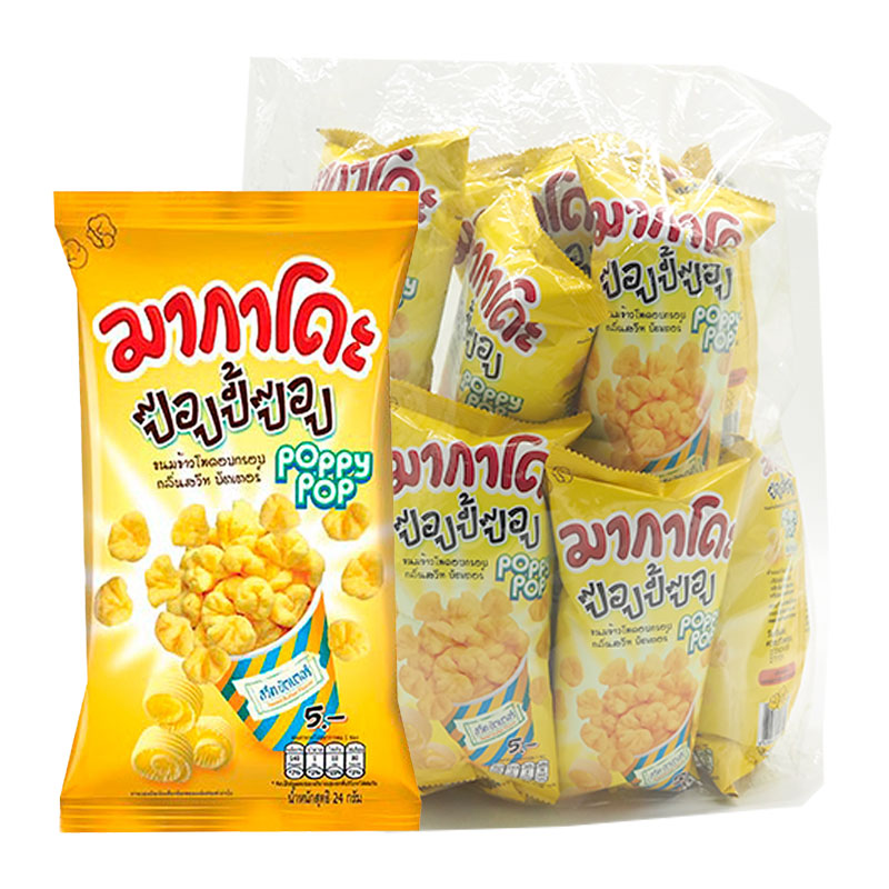 - ชื่อสินค้า: มากาโดะ ป๊อปปี้ป๊อป ขนมข้าวโพดอบกรอบ รสสวีทบัตเตอร์ 24 ก. x 12