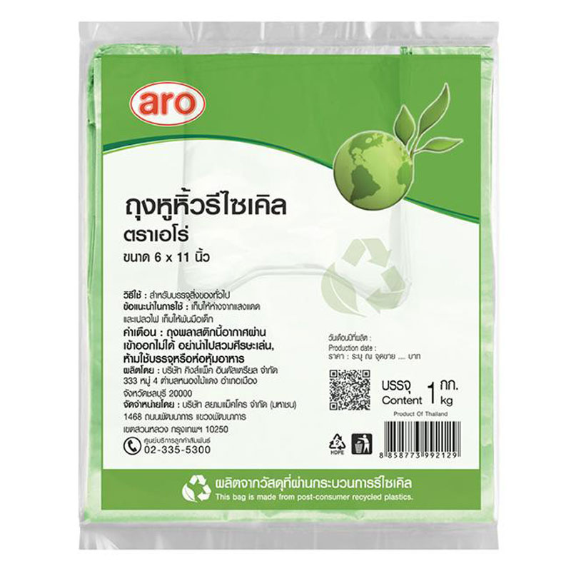 เอโร่ ถุงหูหิ้วรีไซเคิล 6x11 นิ้ว สีเขียว 1 กก.