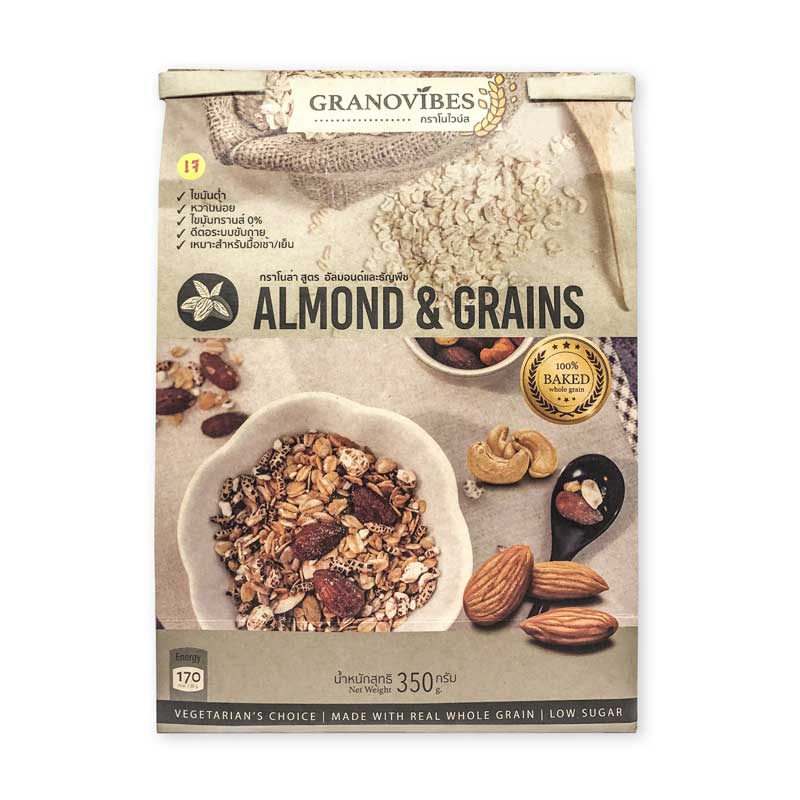 - ชื่อสินค้า: กราโนไวบ์ส กราโนล่าอัลมอนด์ธัญพืช 350 ก. - แบรนด์: กราโนไวบ์ส - ปริมาณบรรจุ: 1 หน่วย