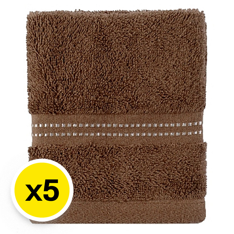 เอโร่ ผ้าขนหนู 12x12 นิ้ว สีน้ำตาล แพ็ค 5 ผืน