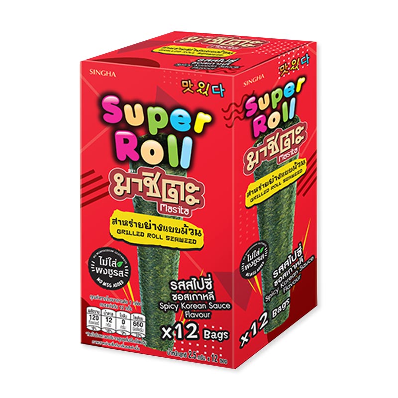 มาชิตะ สาหร่ายย่างแบบม้วน รสสไปซี่ซอสเกาหลี 2.5 กรัม x 12 ถุง